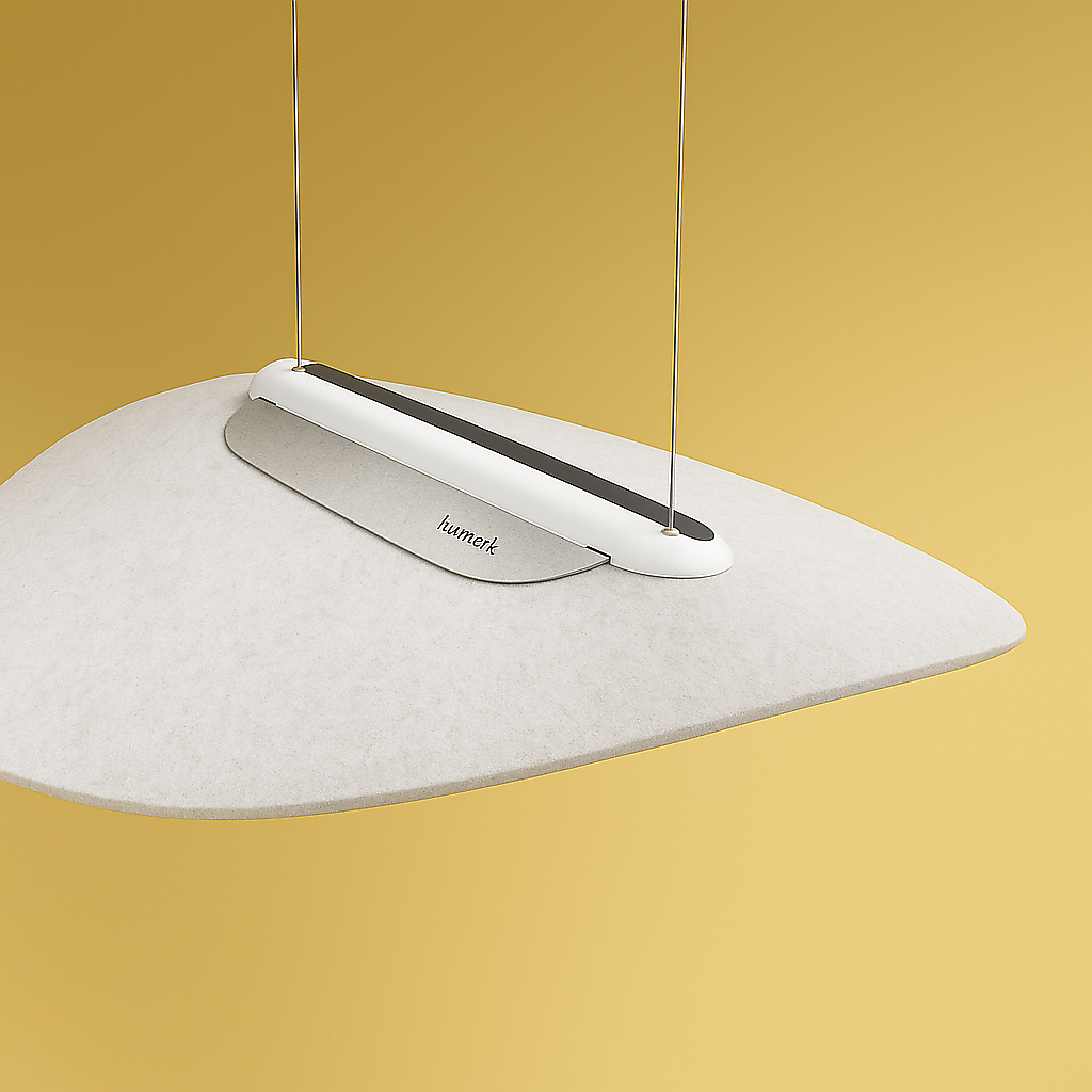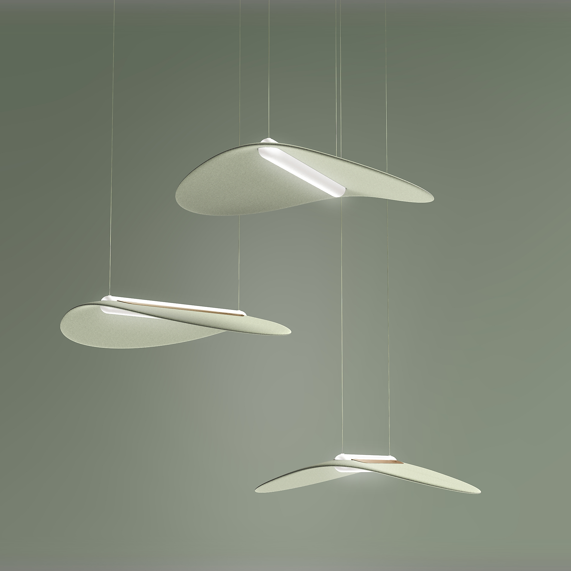 Leuchtender Blickfang. Licht & Akustik - ein Mehrwert. In verschiedenen Größen mit einem schallabsorbierende Schirm aus recyceltem Formvlies (PES) sorgt die x.leaf für ein besseres Licht und gestaltet Räume, welche die Sinne anspricht und neugierig macht. Zugleich verbessert sie die Raumakustik. Diese Pendelleuchte ist neu und eine schwebend leichte Alternative zu den sonst üblichen Standardleuchten. Wahlweise in vielen Schirmfarben und Lichtfarben. Die x.leaf ist eine ideale Leuchte für alle Bereiche in Schulen, Büros, Praxen, Konferenzräumen, Hotels und Foyers. Es gibt sie in 2 unterschiedlichen Baugrößen.